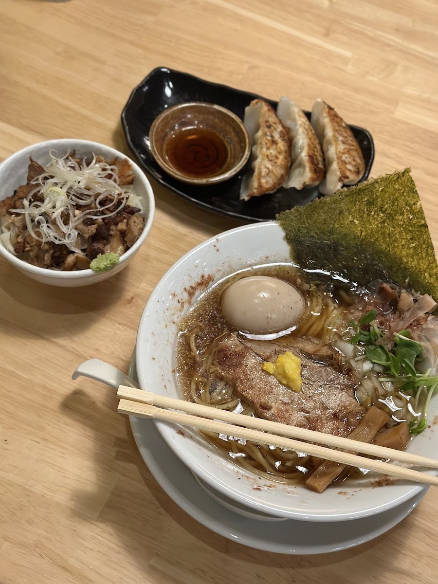 Very nice clear soup ramen! Can choose with or without yuzu, they have sio soup, shoyu and some rich and spicy soup. Simple to press and order via machine. Take note they only accept coins and 1000 and 2000 yen but I guess you can change with them. Their gyozas are juicytoo! Spacious space and not noisy and limited seating